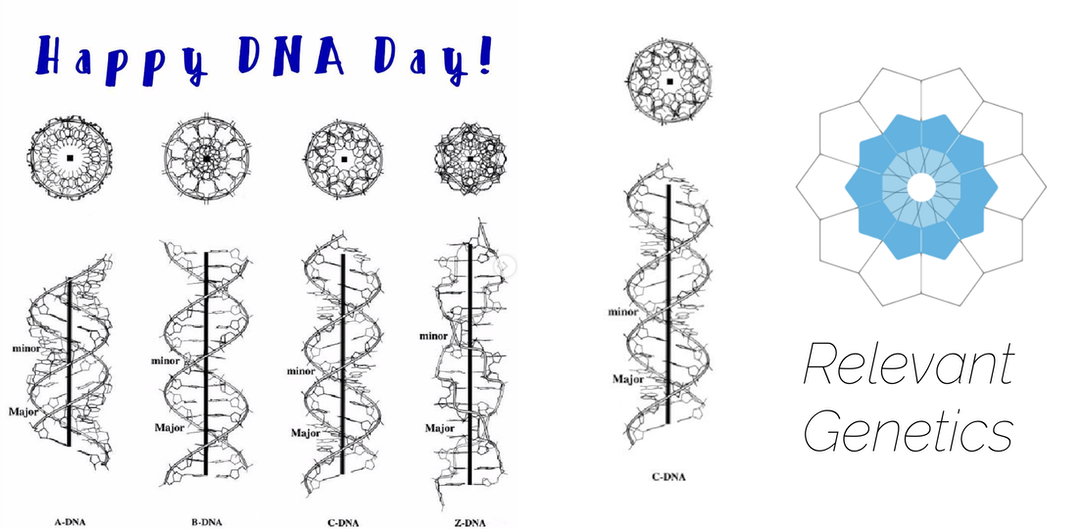 Last year to celebrate the day, I shared a post about DNA configurations. I explained that DNA is a flexible molecule that can bend in different ways. It also has a beautiful cross-section, which was my inspriation for my Relevant Genetics logo.