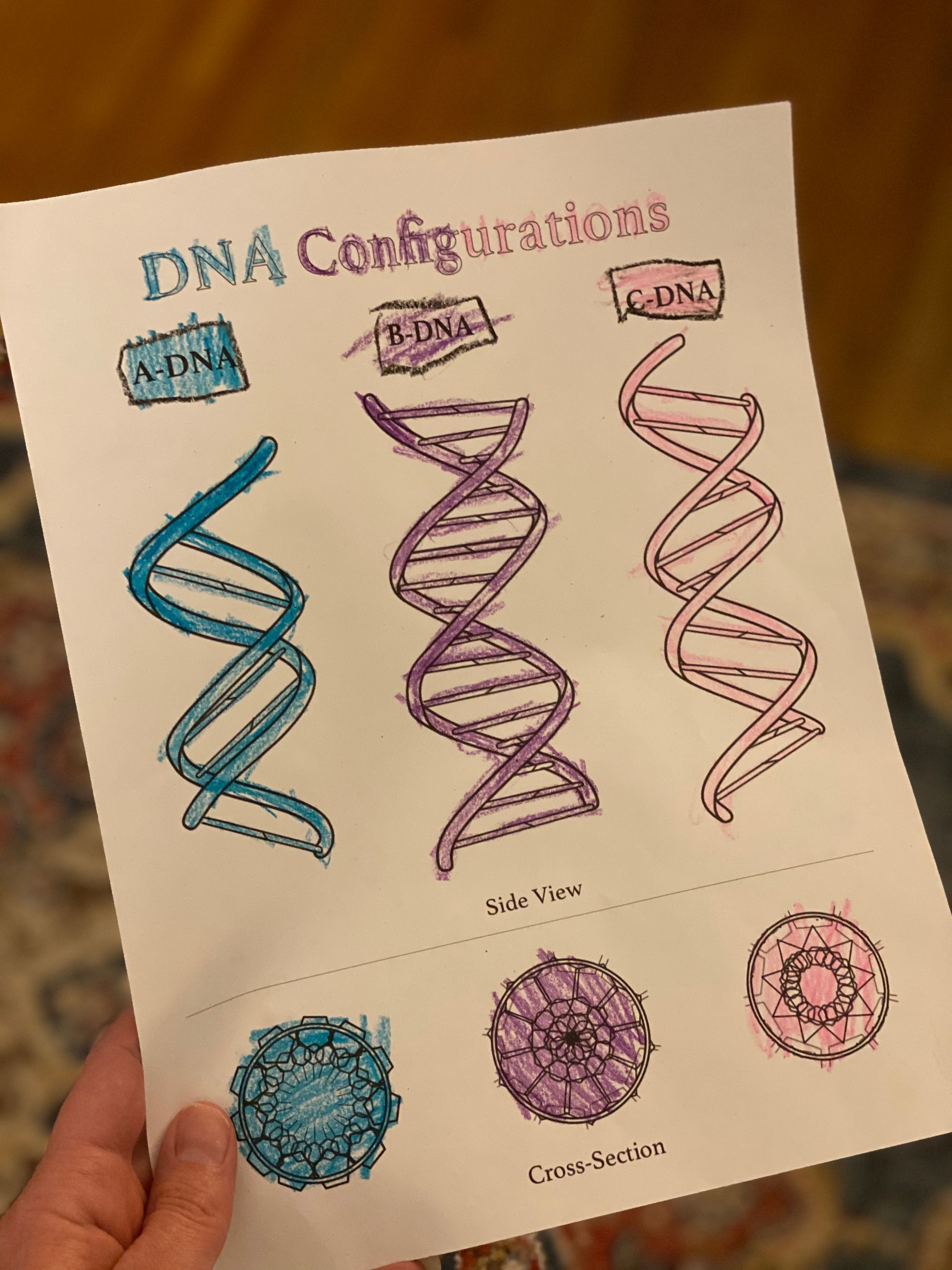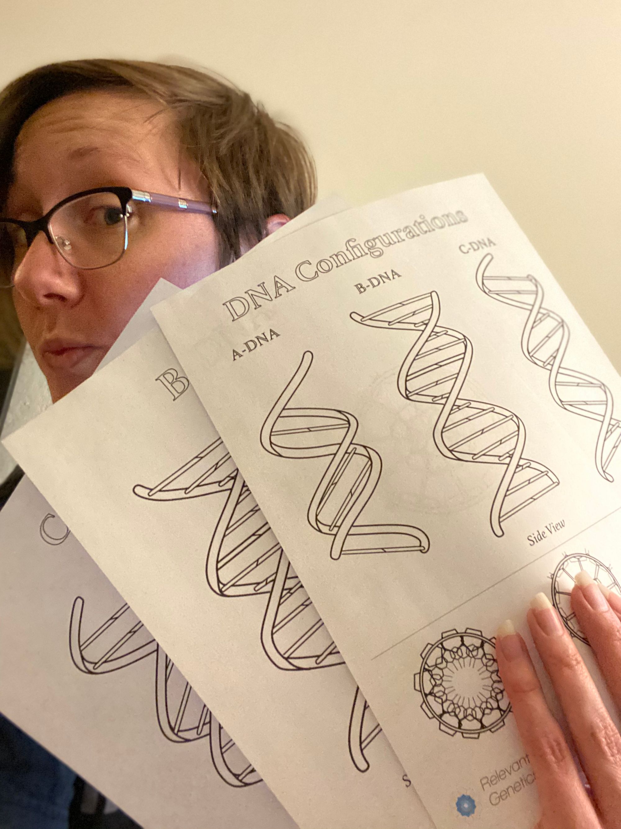 This year, I've taken those images of DNA and turned them into coloring pages that the whole family can enjoy. I think we all could use a little calming, nerdy activity right now.