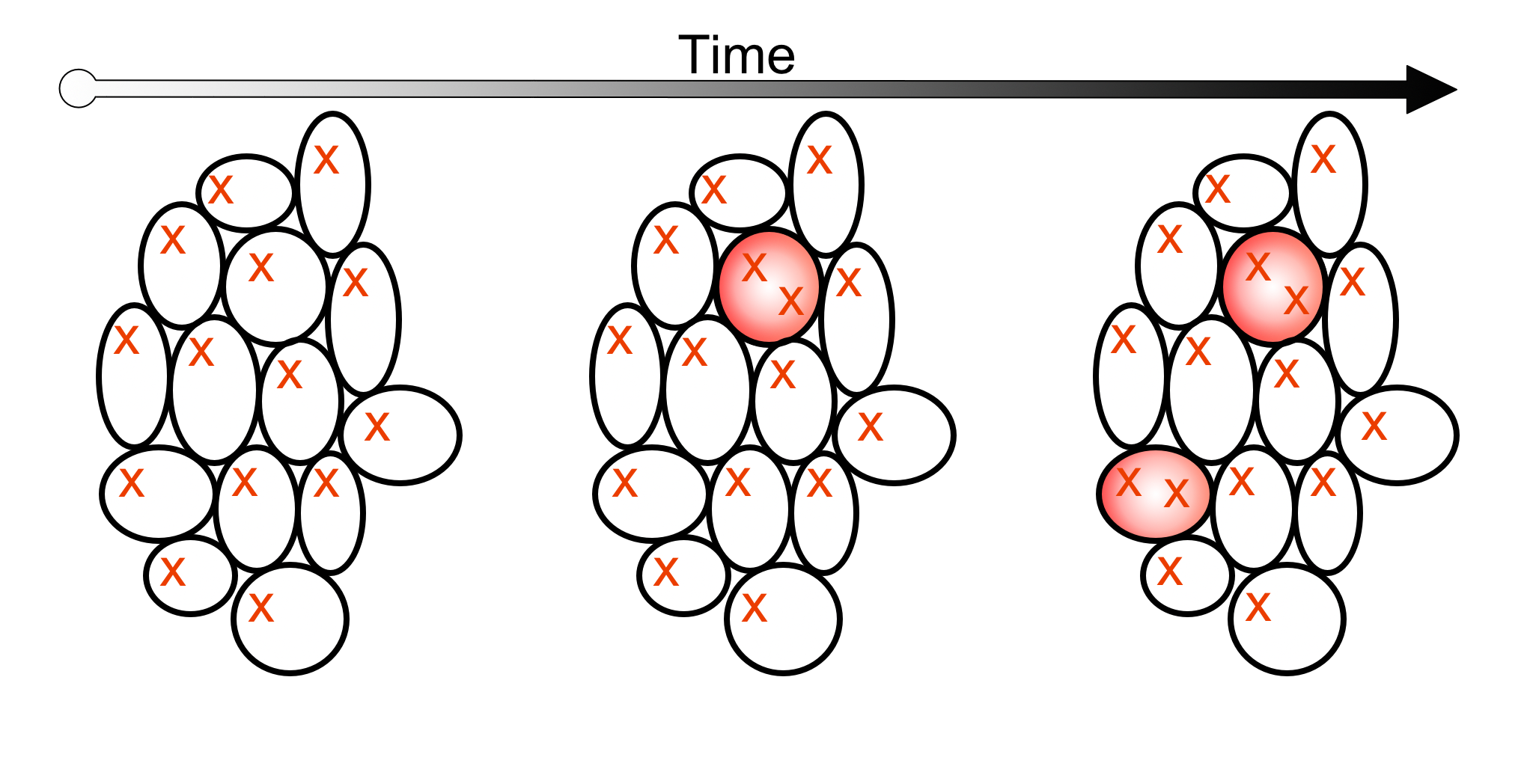 Our bodies are constantly managing DNA damage. We tend to think this damage is caused by things from our environment wreaking havoc on our cells— cigarette smoke, nuclear radiation, too much sunlight, smog, unhealthy foods. While this is true, a lot of DNA damage comes from the normal wear and tear of being alive. Some of the chemicals that we need in our cells to survive, like oxygen, can damage our DNA. When cells replicate, they have to make a copy of their DNA to give to the new cell. This copying process is imperfect, and typos happen all the time. Our cells have systems in place to repair damage and fix typos, but some changes manage to slip through the cracks and stay in that cell-line forever.